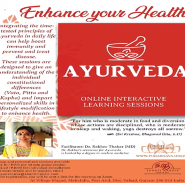 Dr Rakhee Thakar - After practicing Allopathy at tertiary level care in the capital of the country, she joined the charitable Shanti Arogya Mandir to serve the rural folk in Gujarat. Her reverence for Ayurveda, strong base in modern medicine and belief in integration of the ancient wisdom with modern knowledge guide her workshops with health education for disease prevention.